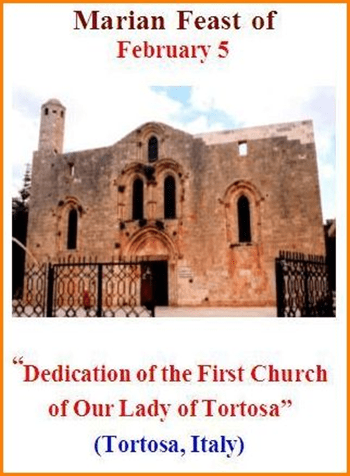 “… 5 de fevereiro: Dedicação da primeira Igreja de Nossa Senhora, por São Pedro, Tortosa, Itália